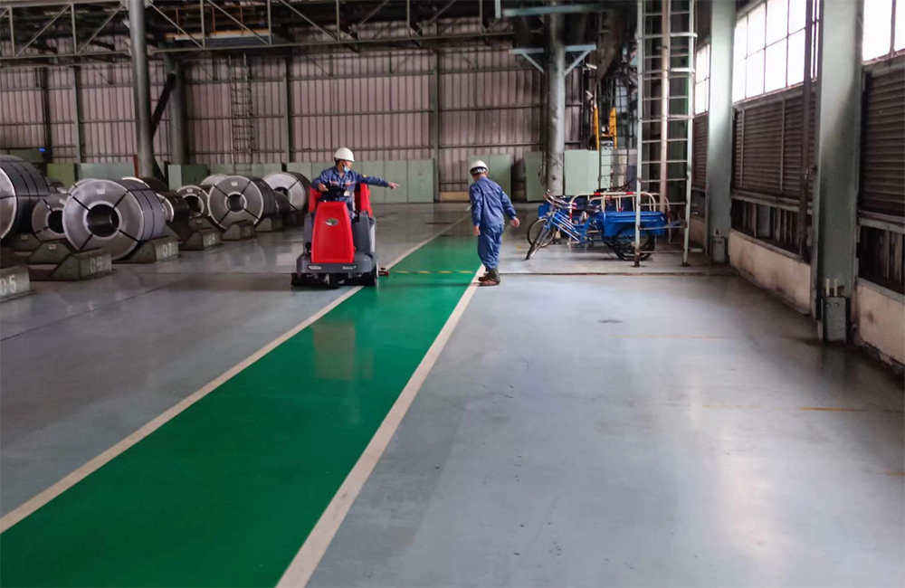 然后我們只要腳踩下踏板,駕駛式洗地機(jī)就會(huì)工作。